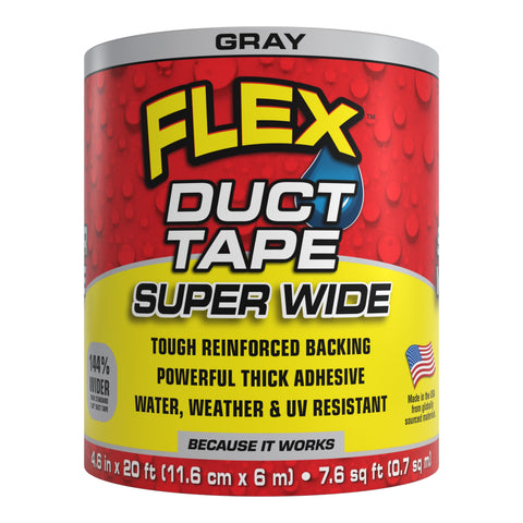 Flex Super Wide Duct Tape is removable, repositionable, and can be torn by hand (vertically and horizontally), so there’s no waste. Plus, it’s water**, weather, and UV resistant. It comes in a 7.5” size as well as a 4.6’’ size. Both are 20 ft long.